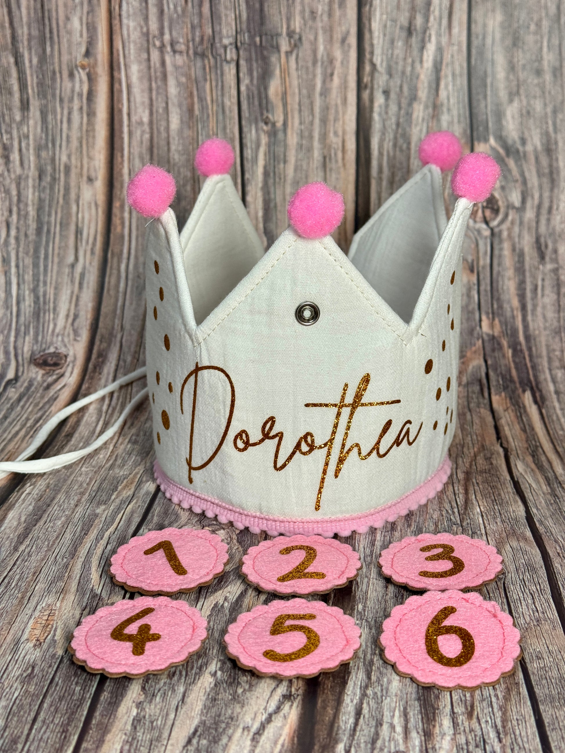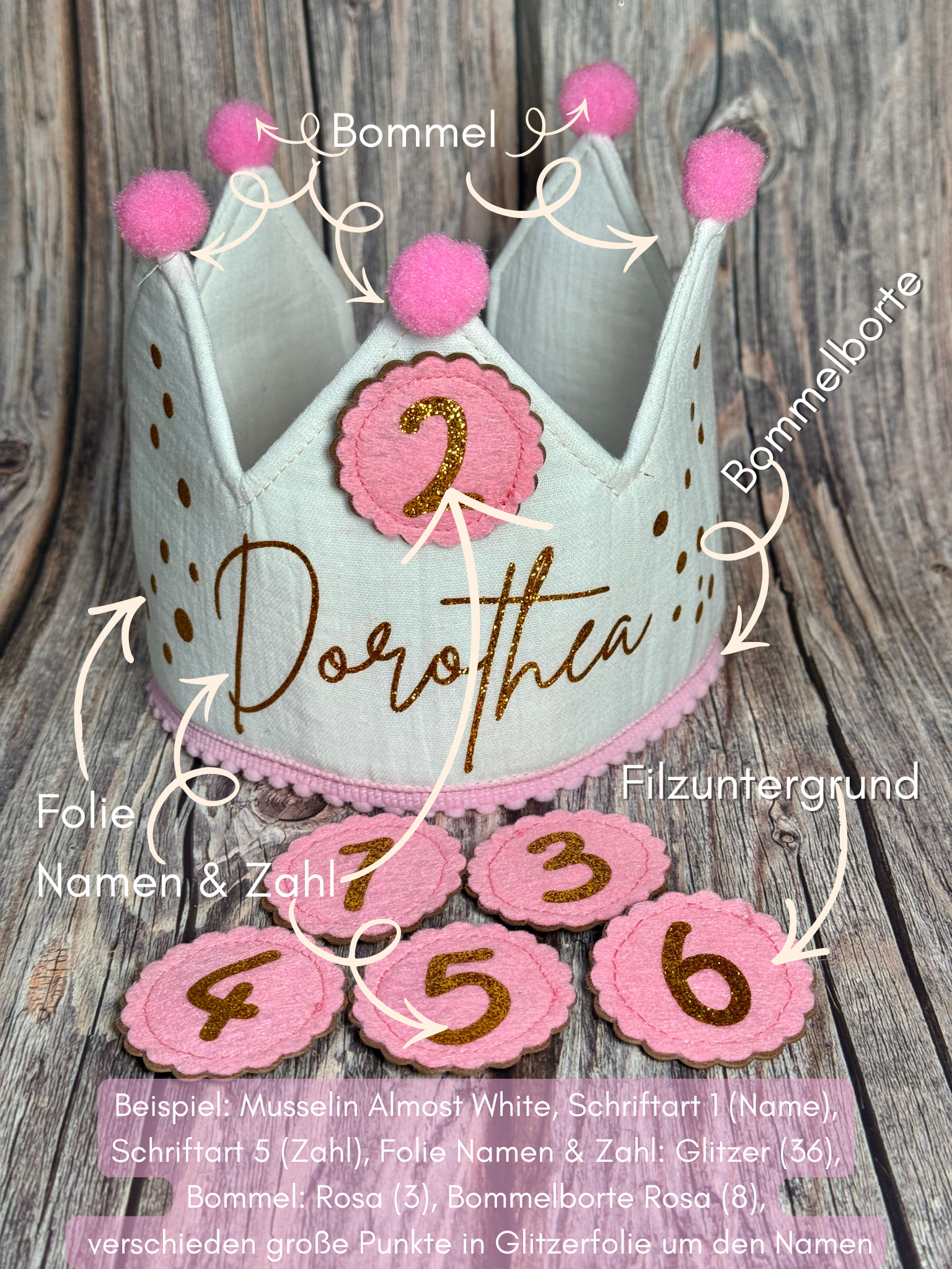 👑 Personalisierbare Musselin-Geburtstagskrone – Für strahlende Geburtstage, Jahr für Jahr! 🎂