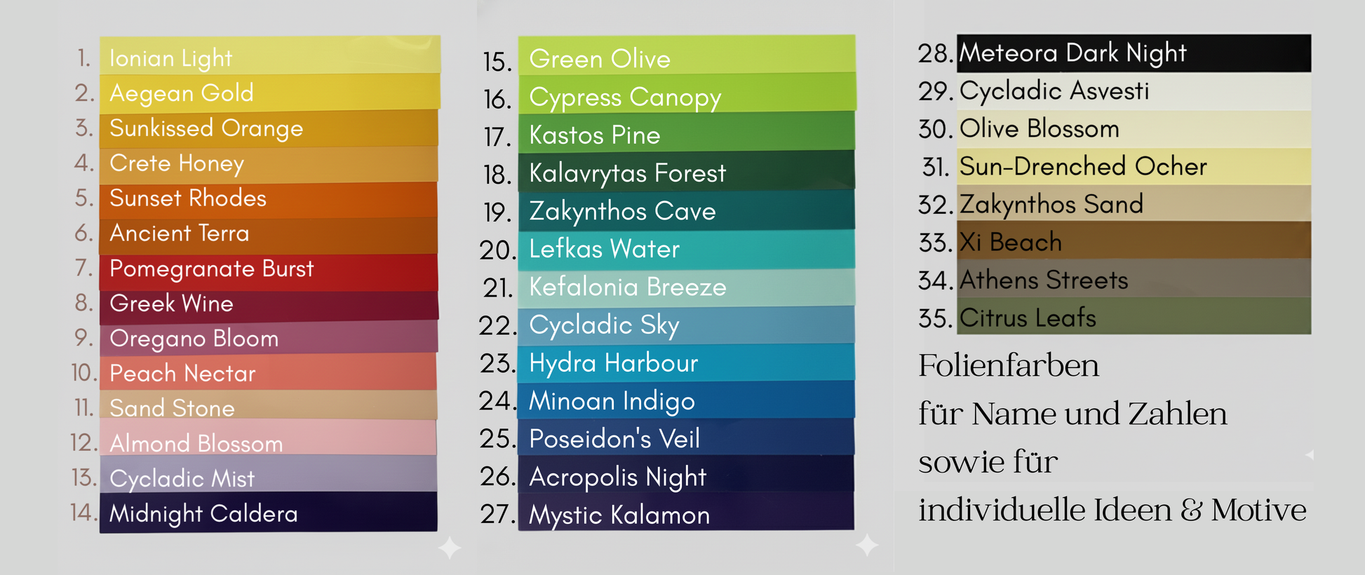 Wichtig: Die verfügbaren Schriftarten und Farbmuster für alle Elemente finden Sie in der **Produktgalerie**.