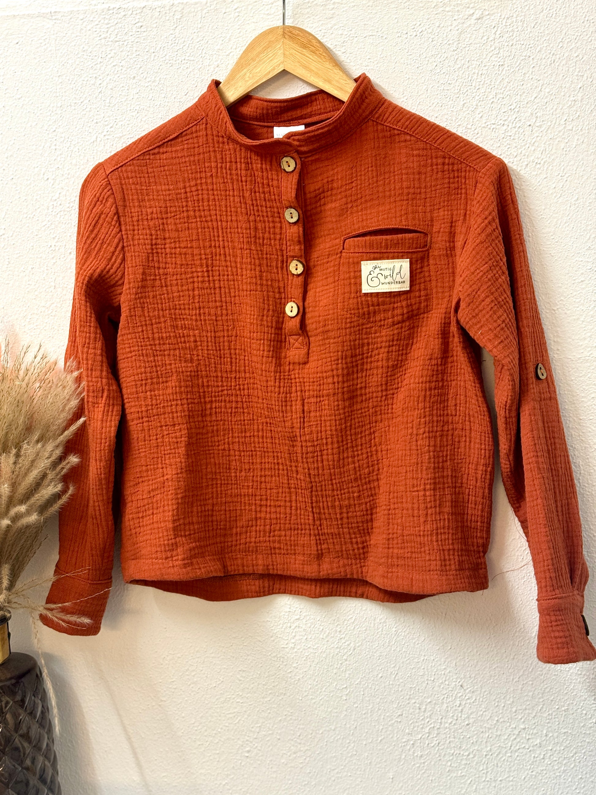 ✨ Unser Hemd aus hochwertigem Musselin begeistert durch seinen lockeren Sitz, den angenehm weichen Griff und liebevolle Details wie Kokosknöpfe und eine kleine Brusttasche. Dank der hochknöpfbaren Ärmel lässt es sich im Handumdrehen von lässig zu praktisch stylen – perfekt für Alltag und besondere Anlässe.
