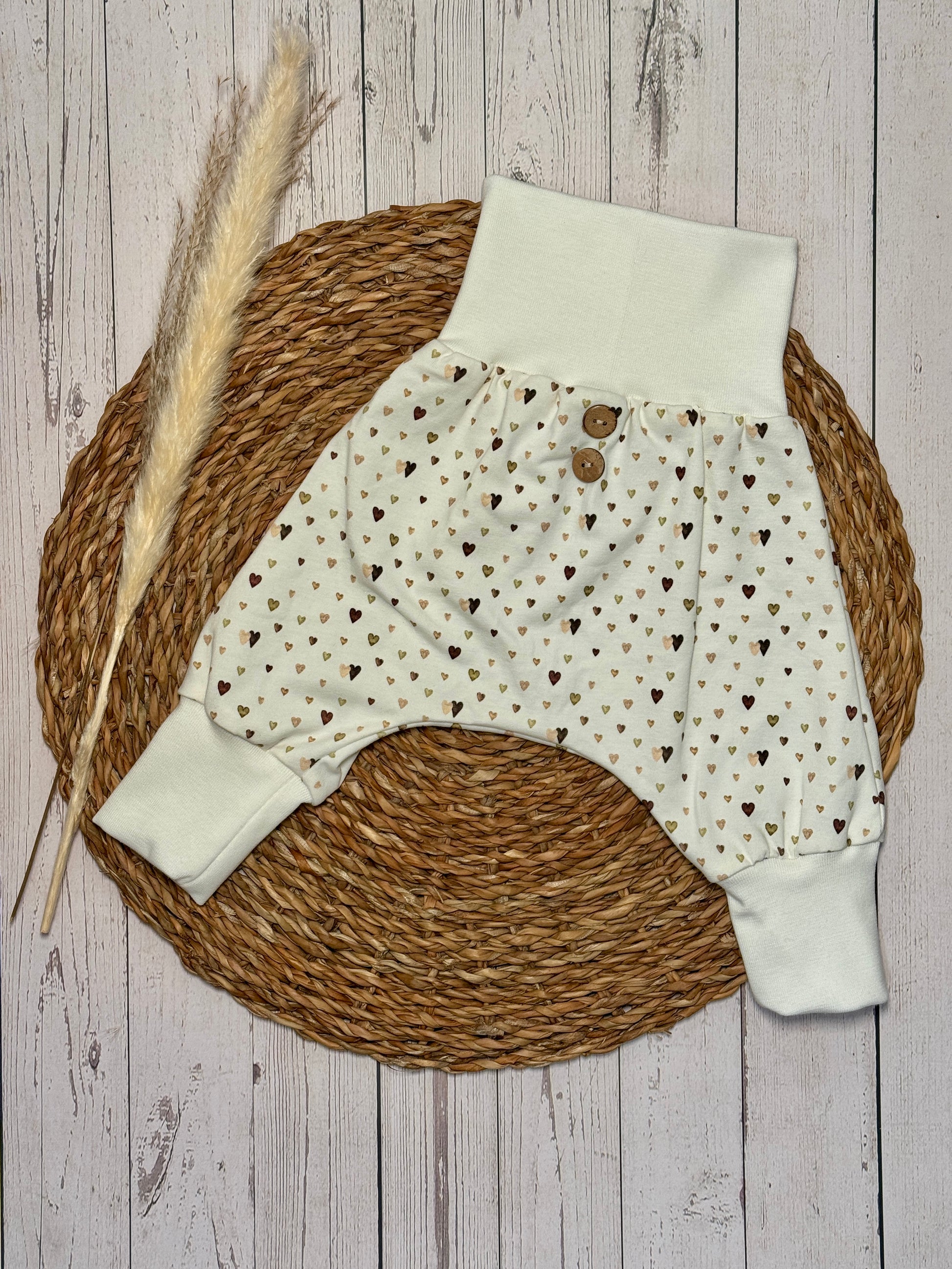 👶 Superbequeme Baby-Pumphose mit Herzchen & Kokosknöpfen