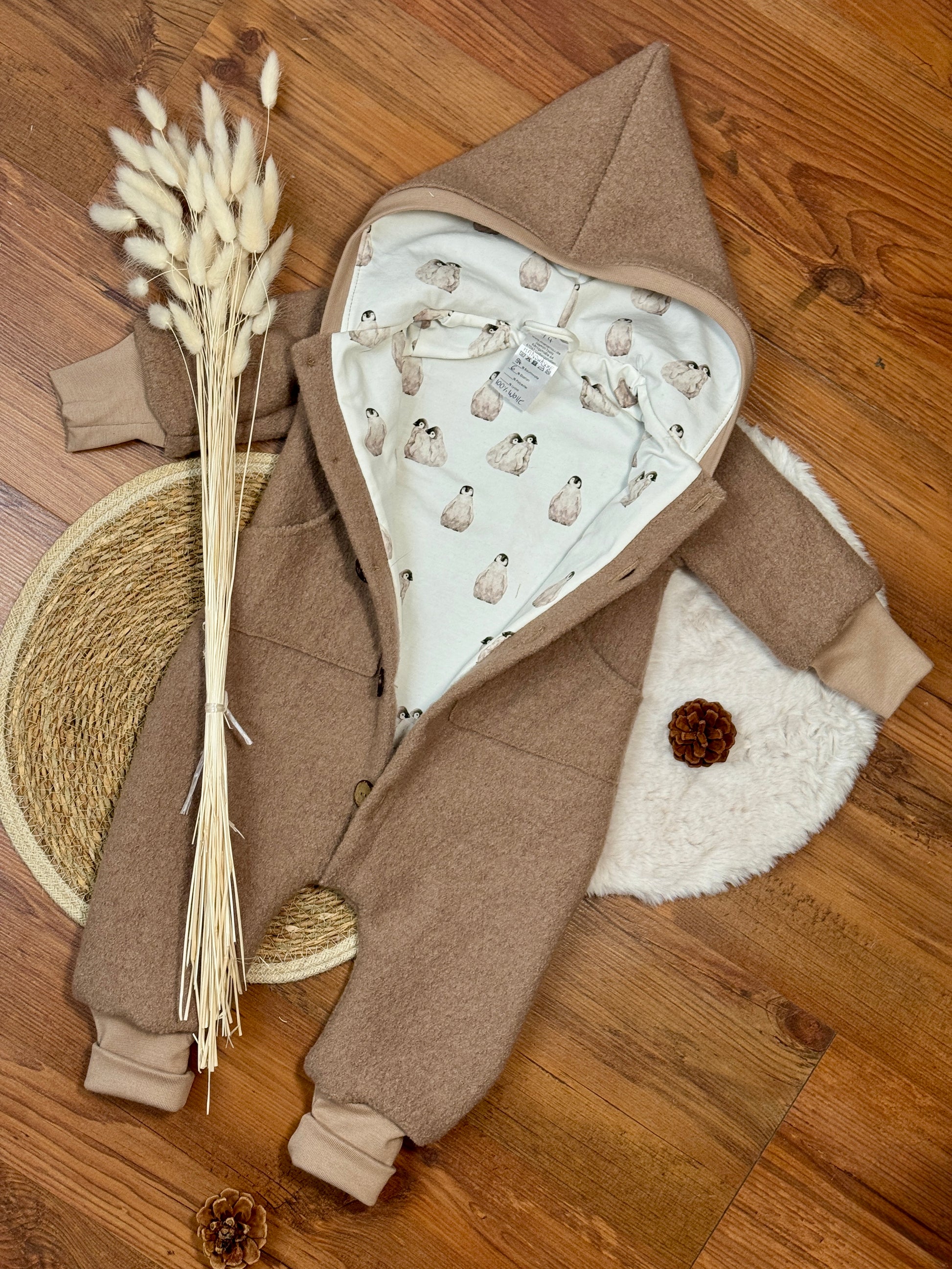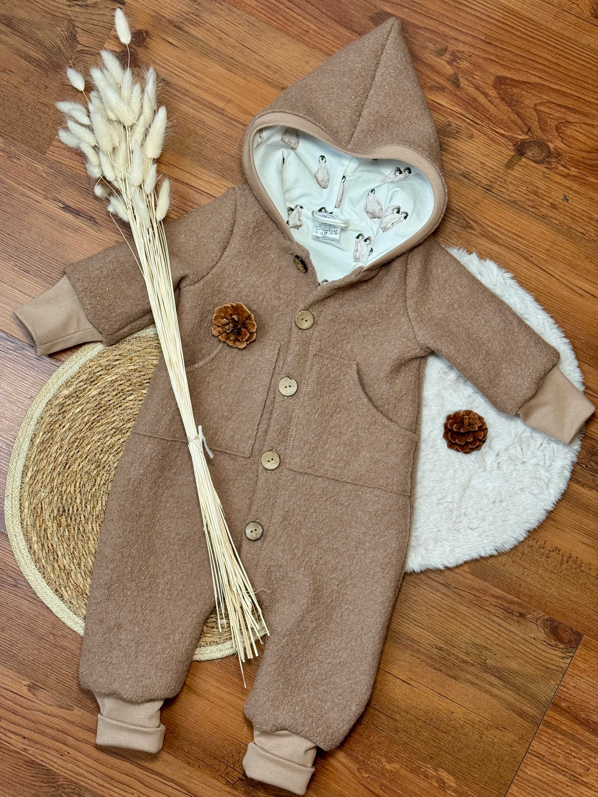 Suchst du nach dem perfekten Begleiter für die kalte Jahreszeit? Unser handgemachter Wollwalk-Anzug vereint natürliche Wärme mit liebevollem Design. Jeder Anzug wird erst nach deiner Bestellung individuell und persönlich für dein Kind genäht – ein echtes Unikat aus Meisterhand!